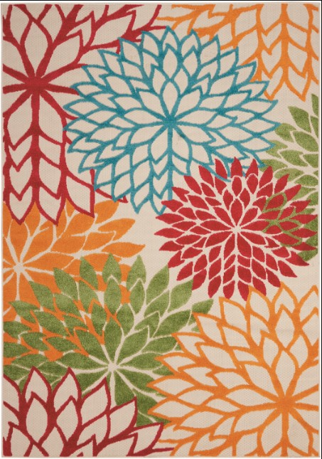 Floral indoor and outdoor rug brings a cool tropical vibe to your home