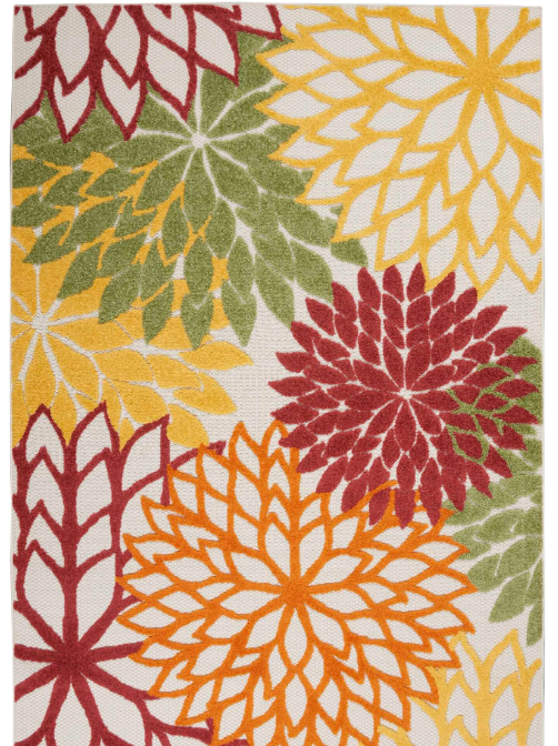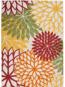 This tropical indoor/outdoor rug from the Aloha Collection features a soft cut pile and textural woven patterns in bursts of brilliant color sure to brighten the look of your surroundings. Oversized floral patterns in red, yellow, green, and orange add a festive touch of the tropics to your patio, deck.Read More