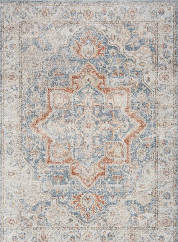 Vintage meets modern with this Persian rug from the Astra Machine Washable Collection. Featuring an artfully faded floral medallion pattern in light blue, the classic design is enhanced with a brilliant sheen that shifts in tone under different lighting.Read More