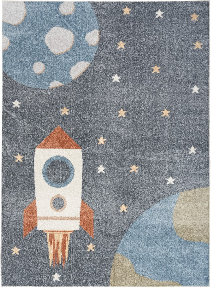Zoom away to new frontiers with this kids rug from the Astra Machine Washable Collection. A soft multicolored rocket soars through space on a blue background, inspiring dreams and hours of imaginative play in your child's playroom or bedroom.Read More