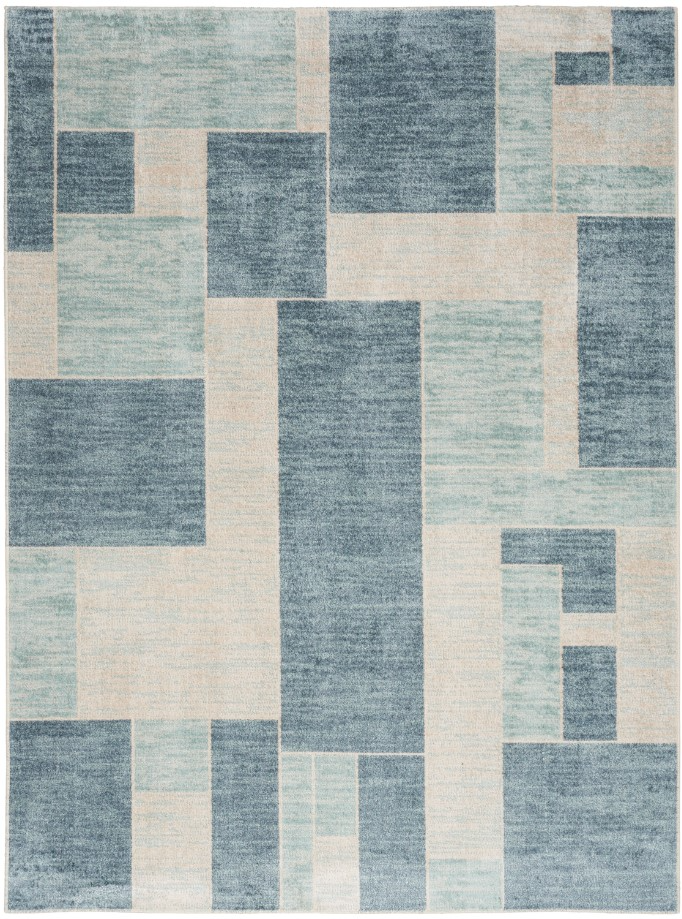 Make a bold statement with this contemporary blue rug from the Astra Machine Washable Collection. The softly textured surface features a muted color block pattern with a shimmery finish that shifts in tone under different light. Made from easy-clean yarns: simply place into your washing machine and air dry!Read More