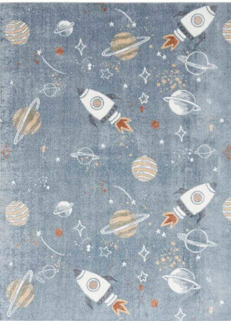 Fuel your childs love for imaginative play with this ivory kids rug from the Astra Machine Washable Collection. The repeat rocket and planet design is finished with a brilliant shimmer that adds a fun pop of color to a playroom, nursery, or kids bedroom.Read More