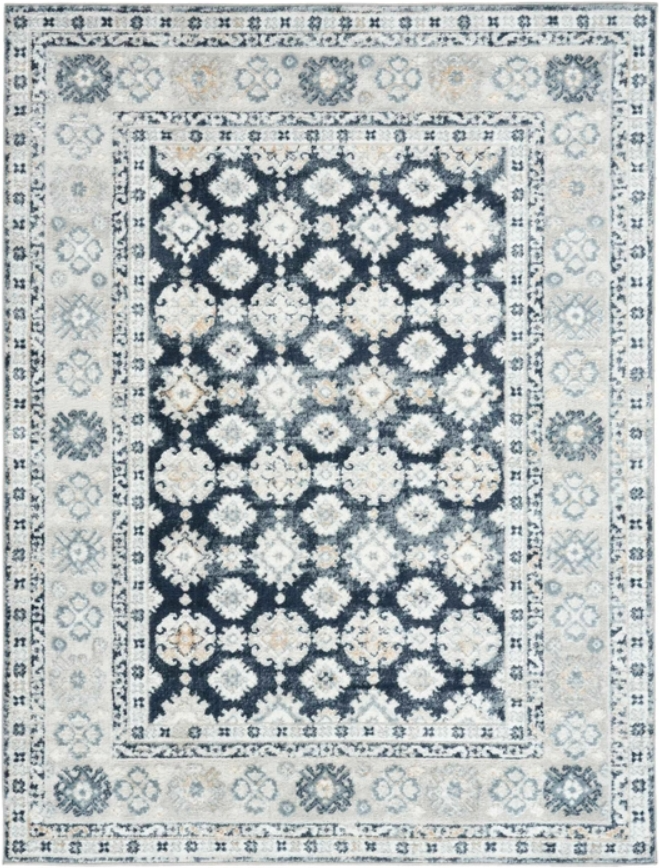 Invite a touch of classic sophistication into your home with this vintage-inspired navy and grey rug from the Dekor collection. The eye-catching mix of ornate patterns, a silky sheen, high-low finish and distressed accents add a unique sense of character to any space.Read More