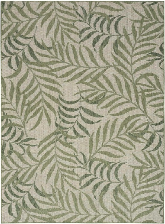 Roll out this Garden Oasis outdoor rug on your patio or balcony and watch your space transform into a lush, tropical getaway. The overlapping palm leaf pattern creates movement, while the tonal ivory and green palette adds a modern feel.Read More