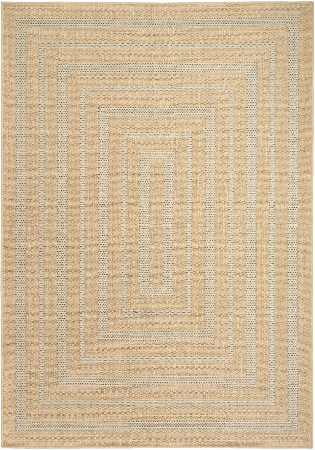 Bring timeless style to your space with this taupe and grey outdoor rug from the Tulum collection. The concentric rectangular pattern is designed to draw the eyeperfect for defining a patio conversation area or living room.Read More