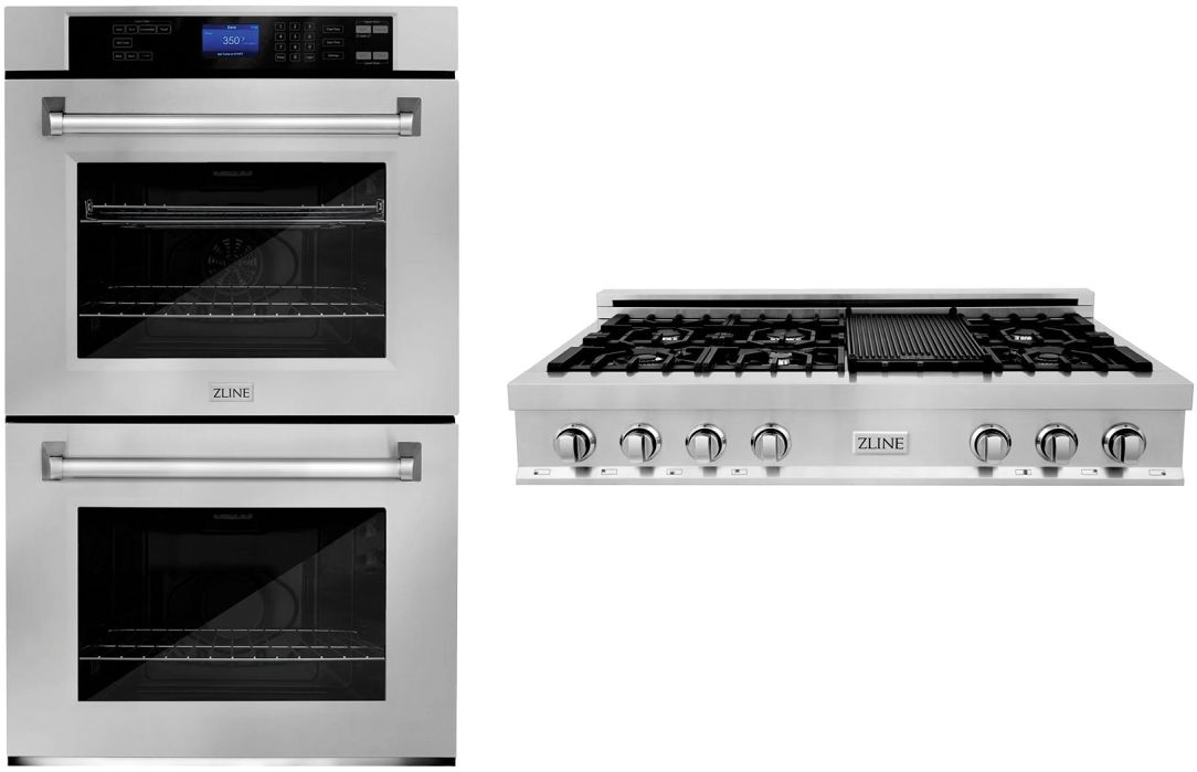 ZLINE 2 Piece Stainless Steel Kitchen Package with gas rangetop and a double electric wall ovenRead More